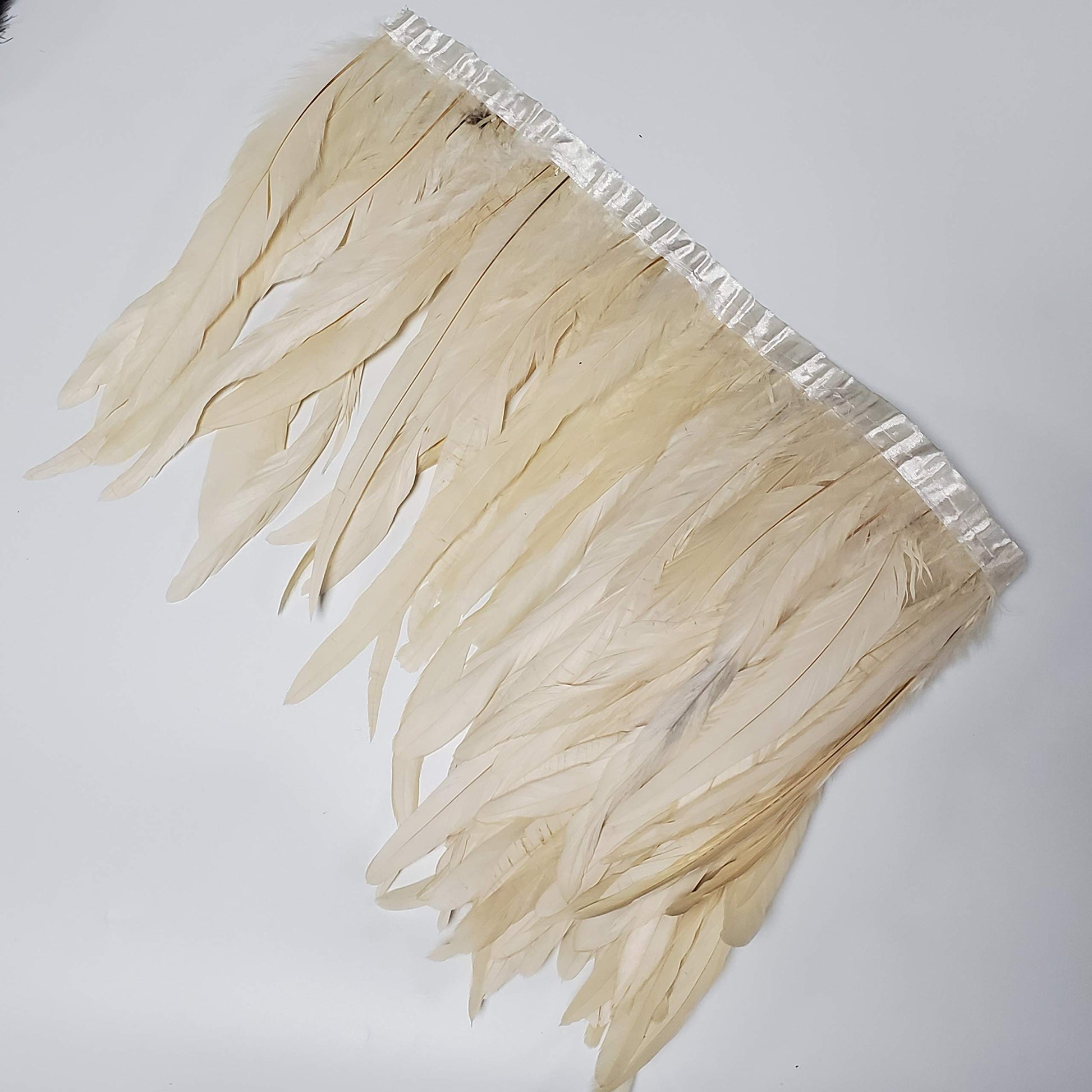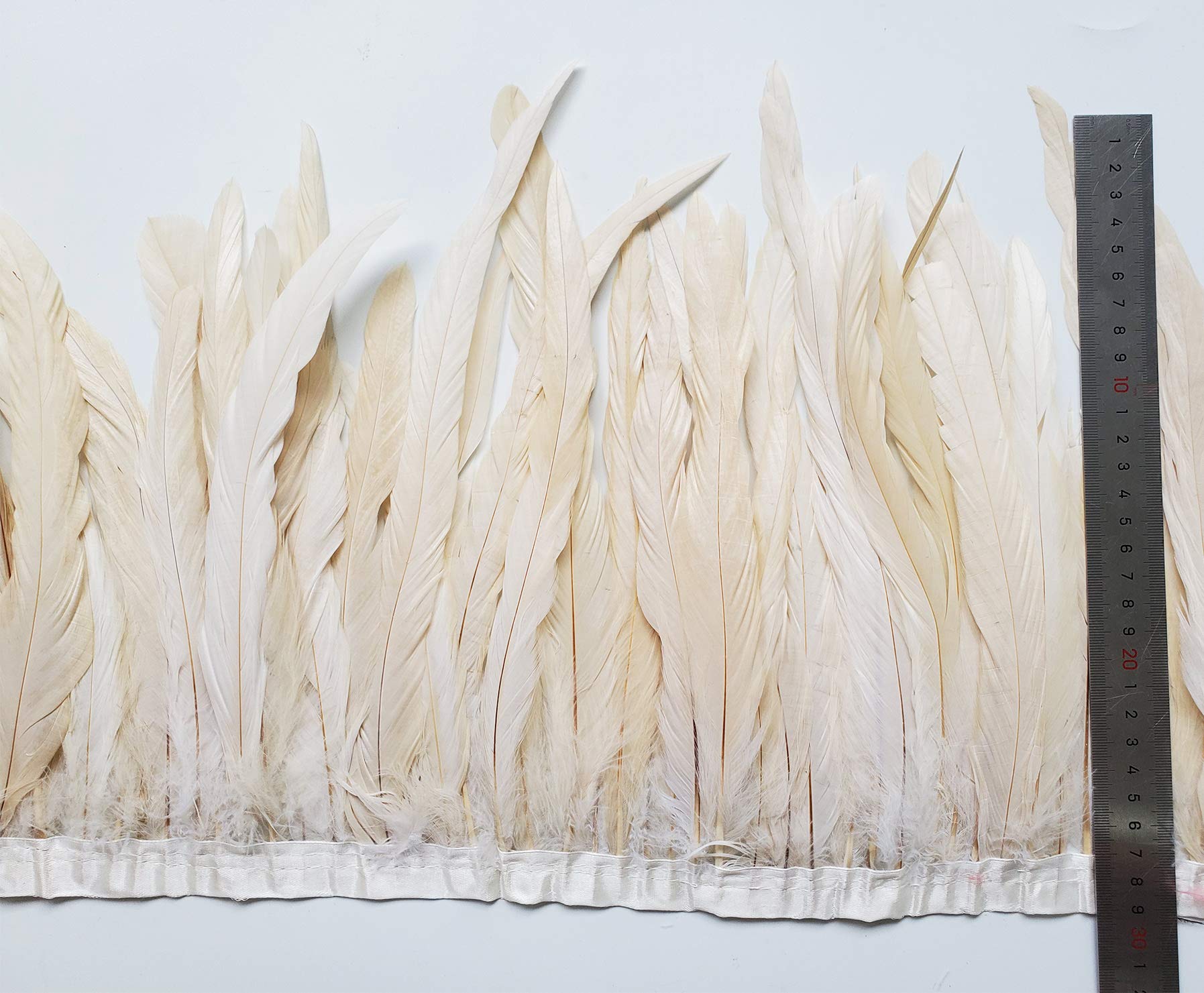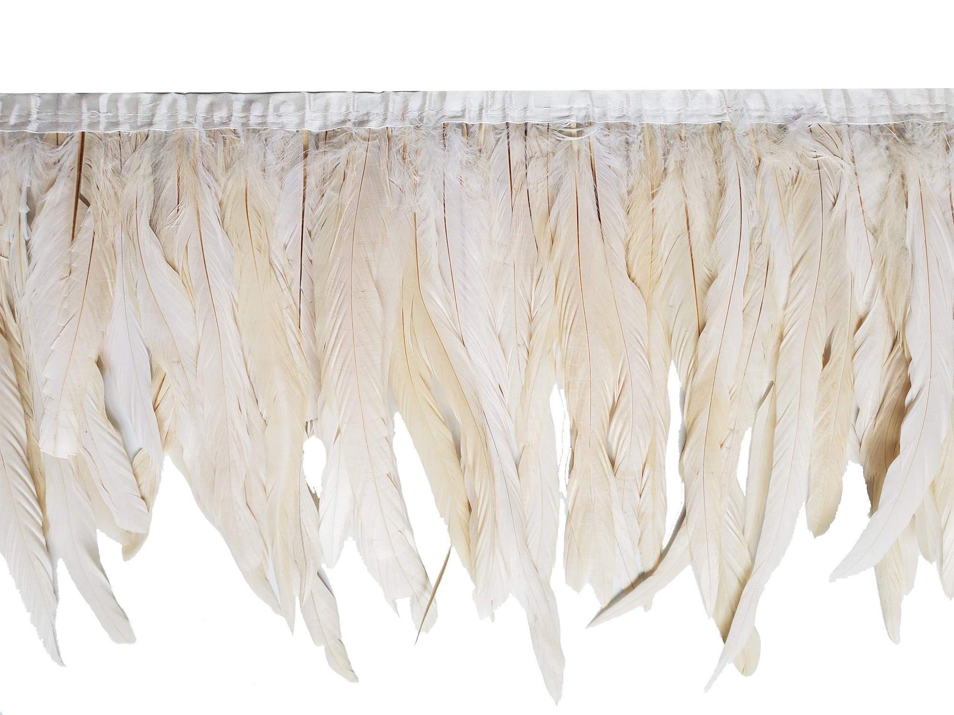 2 Yards 10-12" Rooster Hackle Feather Fringe Trim, Sewing Craft Feather for DIY Decorations-Off White