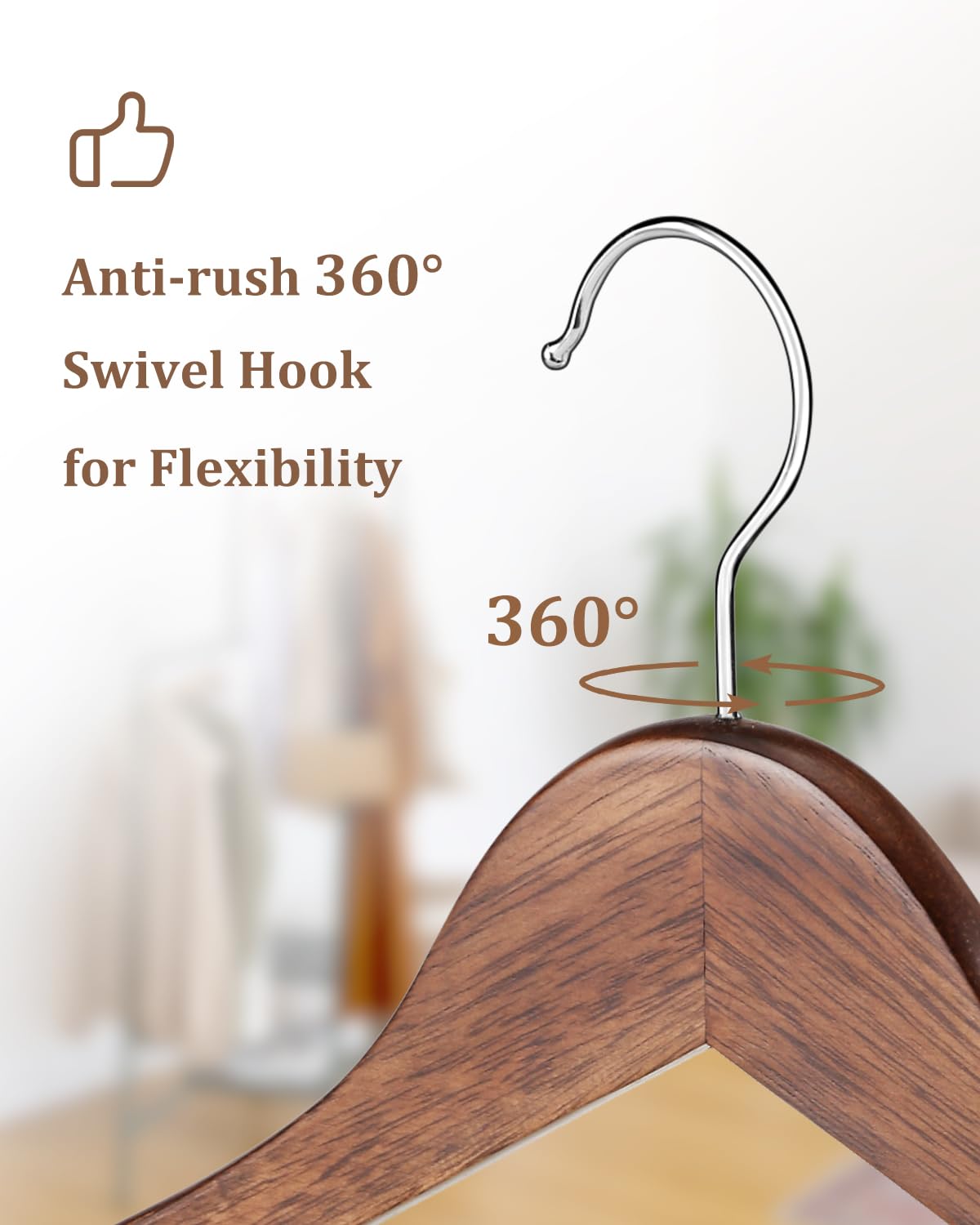 - The 360 Degree Swivel Hook and Cut Notches Design: The rotatable hook on wooden skirt hangers allows you to easily spin the hook at the top to make the hanger face whatever angle you prefer. And 2 cut notches of wood coat hangers are ideal for hanging strappy shirts and dresses
