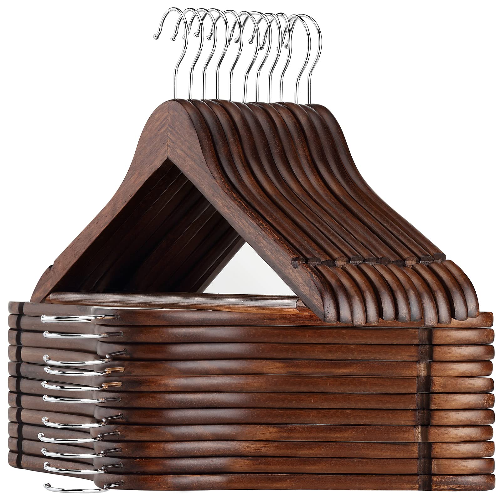 AMKUFO Wooden Hangers 20 Pack Wood Suit Hanger Non Slip Coat Hangers with Smooth Fnish Cut Notches 360° Swivel Hook Clothes Hangers for Jeans Pants Jackets Shirts Dresses, Walnut