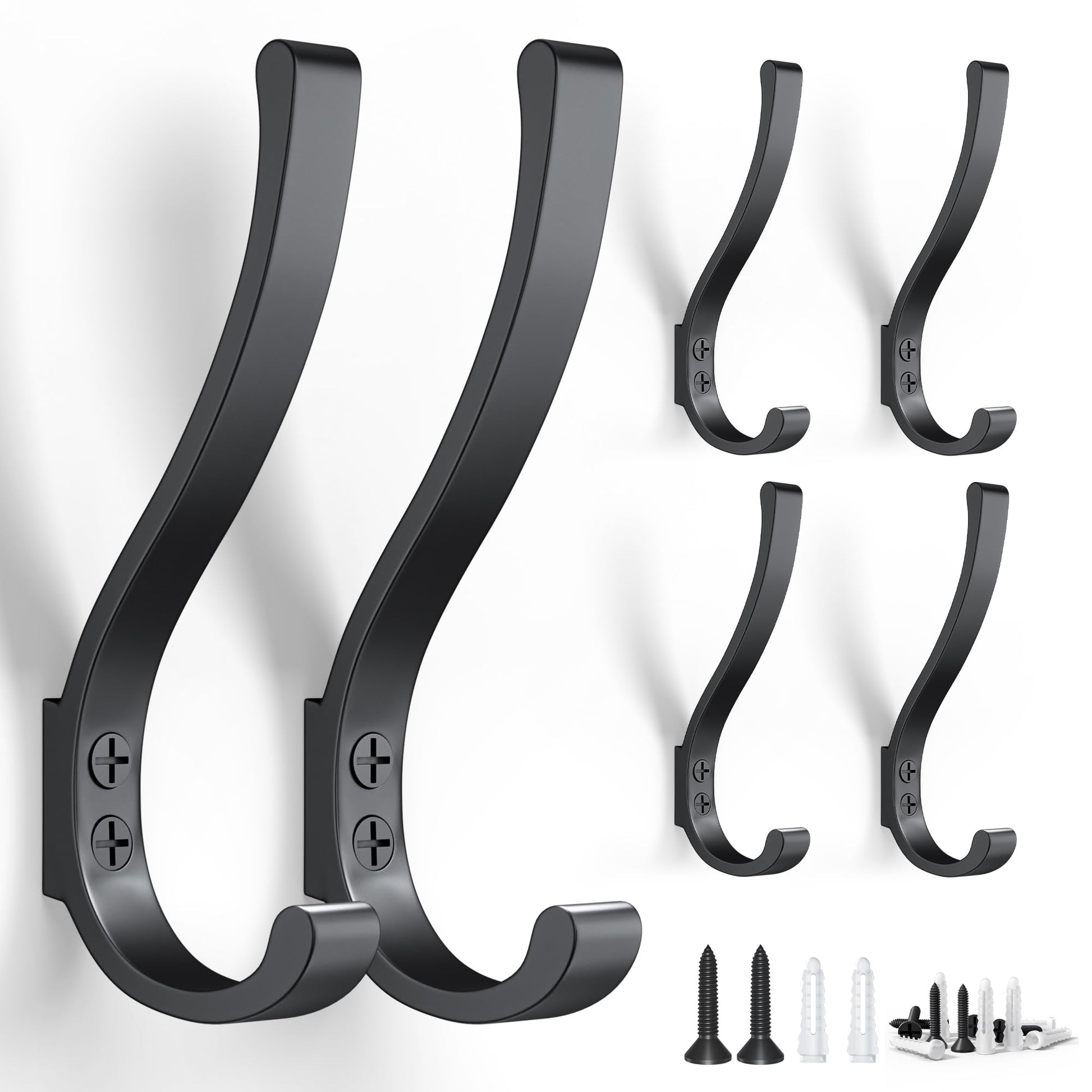 - 【Heavy-Duty Wall-Mounted Hooks for Coats & Backpacks】6-Pack aerospace aluminum hooks hold up to 30 lbs each – securely organize heavy coats, backpacks, bookbags, and tools in entryways, garages, or dorms. No bending, no rust, just reliable storage
