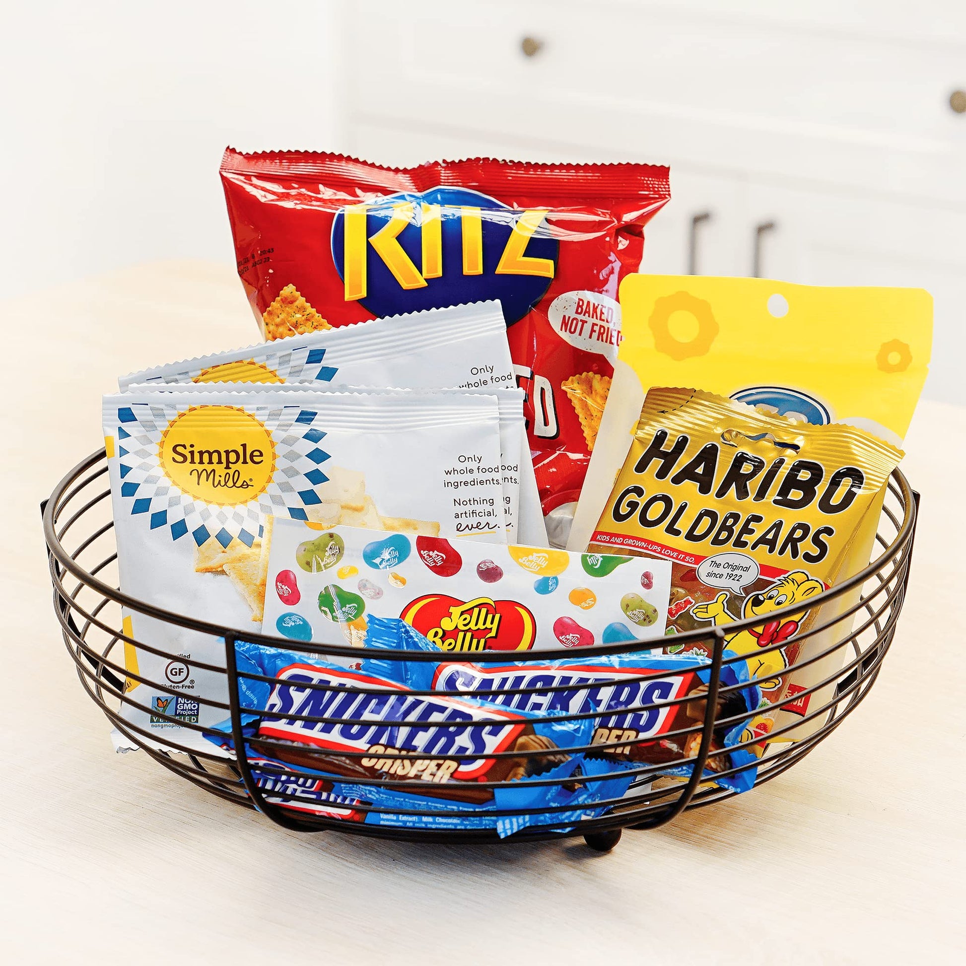 - MULTIPLE USE- Metal Basket is perfect for showcasing fresh, colorful fruits and vegetables in the kitchen, it is also convenient to show snack, cake, cookie, candy, k cup, storage of ingredients