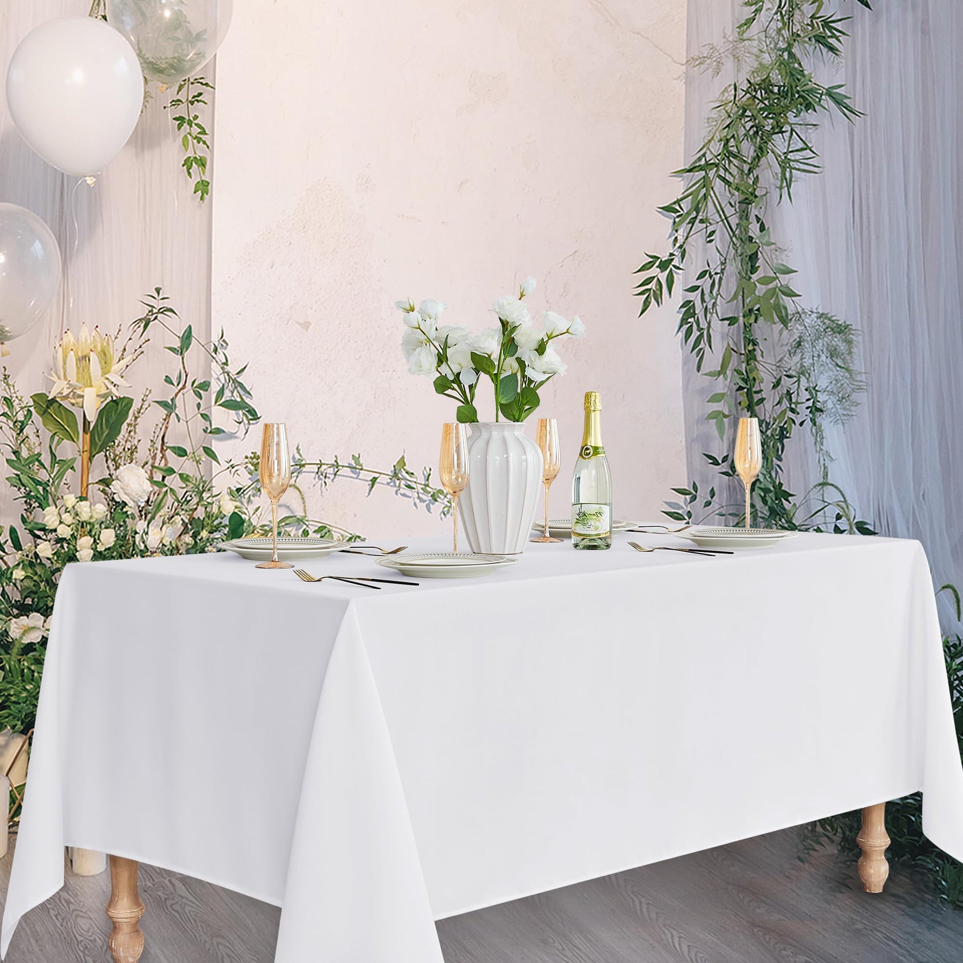 Fitable White Tablecloths for Rectangle Tables, 6 Pack - 70 x 120 Inches - Reusable and Washable Table Clothes for 6-8 Ft Tables, Polyester Fabric Table Covers for Wedding, Party, Banquet