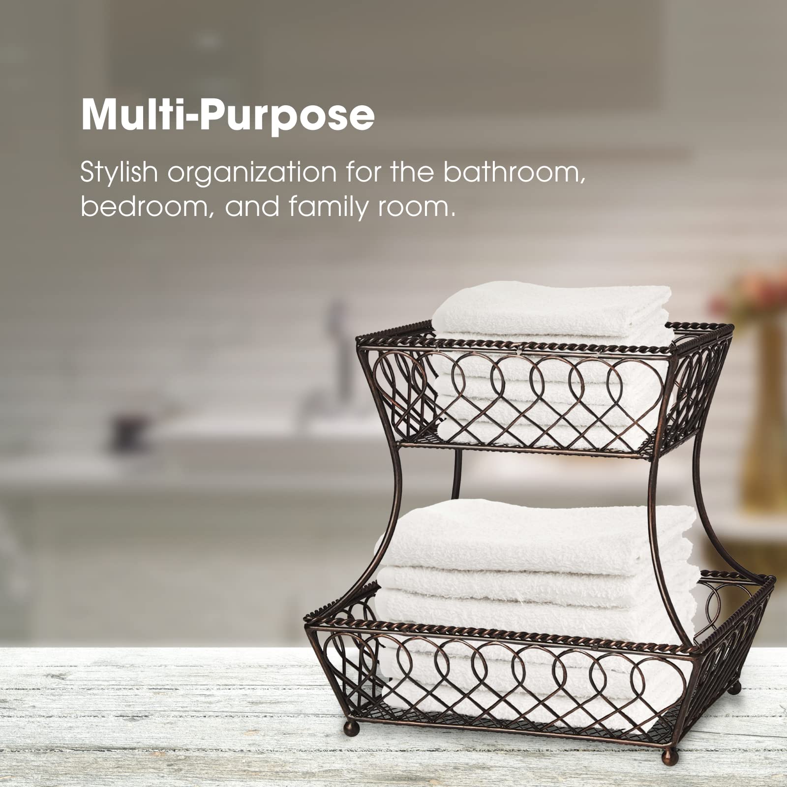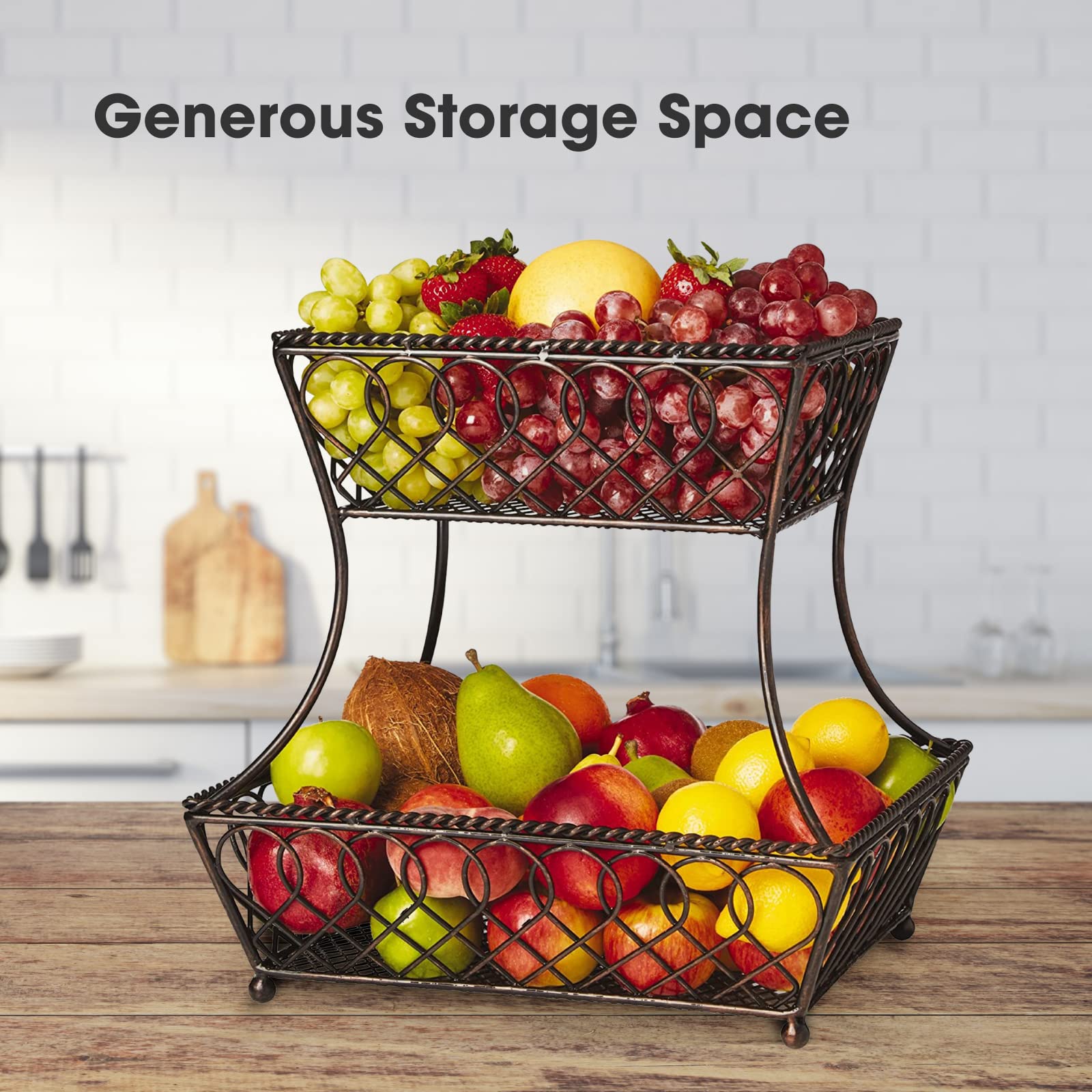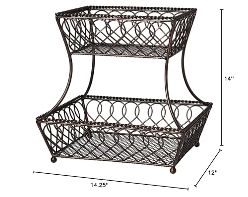 - HANDCRAFTED: This tiered fruit basket is made from heavy gauge, carbon structured steel with a BPA-free, food safe powder coating for long lasting beauty, even under rigorous use; features an oil rubbed bronze finish for an antiqued feel