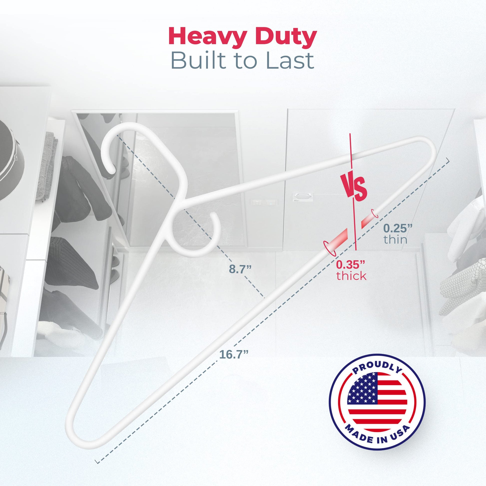 Made in USA Heavy Duty Plastic Clothes Hangers Bulk, 20 30 50 100 Pack Available, Strong Plastic Hangers, Jacket Coat Hangers, Thick Plastic Hanger for Closet and Clothing Hangars (24pk White)