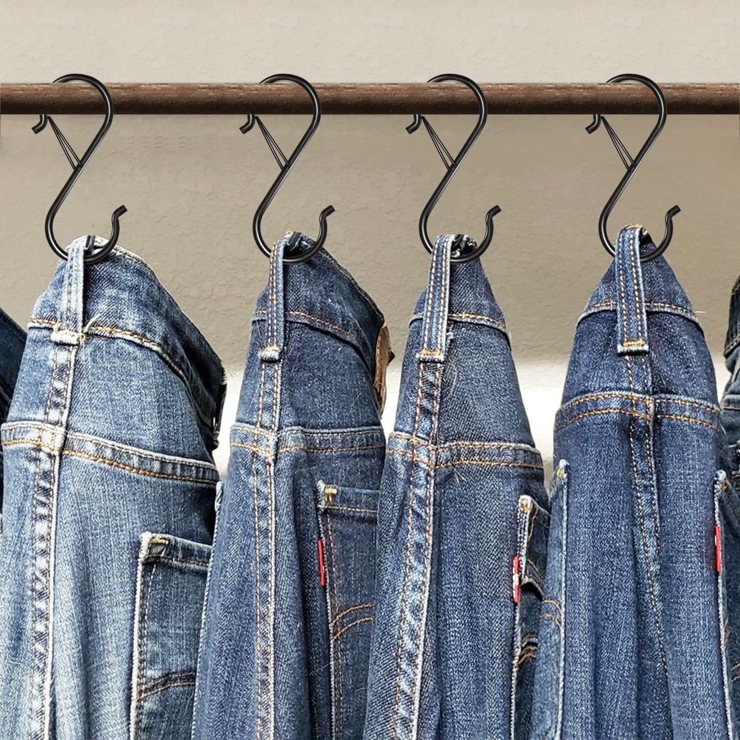 - Easy to Use: Both sides can be used for hanging items, meeting your different needs. You can use S hooks to hang your pots and pans, plants, clothes, bags on your rack, rod or shelves. Also use in closet, bathroom, garden.